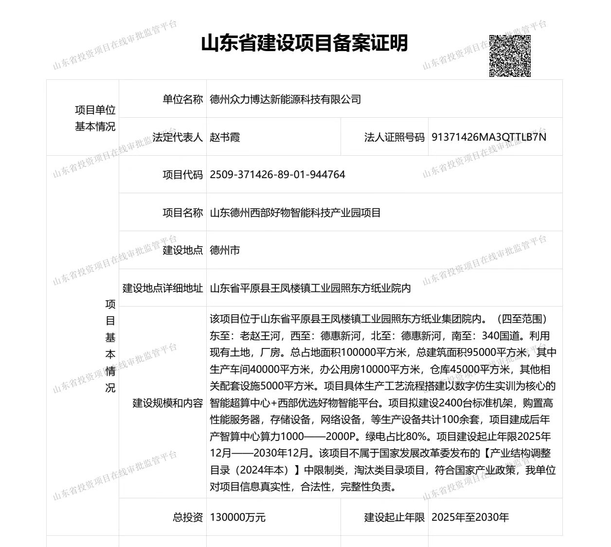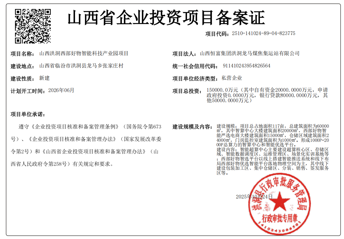 在二十届四中全会胜利闭幕之际,西部好物智能科技产业园项目传来喜报——成功完成山西省重点项目备案,成为地方落实国家战略、推动产业升级的重要实践。该项目由国家新闻出版总署批准设立的综合性国家级报纸《西部时报》全权委托其运营机构西部传媒策划、运营与建设。此次备案落地,既是西部传媒集团响应国家战略规划的重要实践,也是其紧抓新一轮科技革命和产业变革机遇的具体行动。项目聚焦智能算力领域,将全面落实国家“人工智能+”行动规划,构建智能超算、好物智选等核心板块,形成“算力支撑+产业赋能”的一体化发展模式。